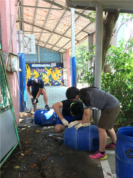 活動時間:2018年7月22日上午10:00-12:00 活動地點:興仁國小 與會人員:黃裕農、吳少鈞、邱宣証、巫晨寧等…… 工作目的:翻堆及堆肥桶準備 活動內容摘要: 至國小製備堆肥桶,然後對原先實驗中的堆肥桶進行例行性堆肥工作,並加水。此次清潔隊提供六個實驗堆肥桶,先鑽止水閥洞口,後清洗桶子,放置晾乾,待下次製備。 後續推動想法: 將堆肥桶做適當改造及清洗,而後改造完成能在堆肥實驗中使用,做出品質優良之堆肥。