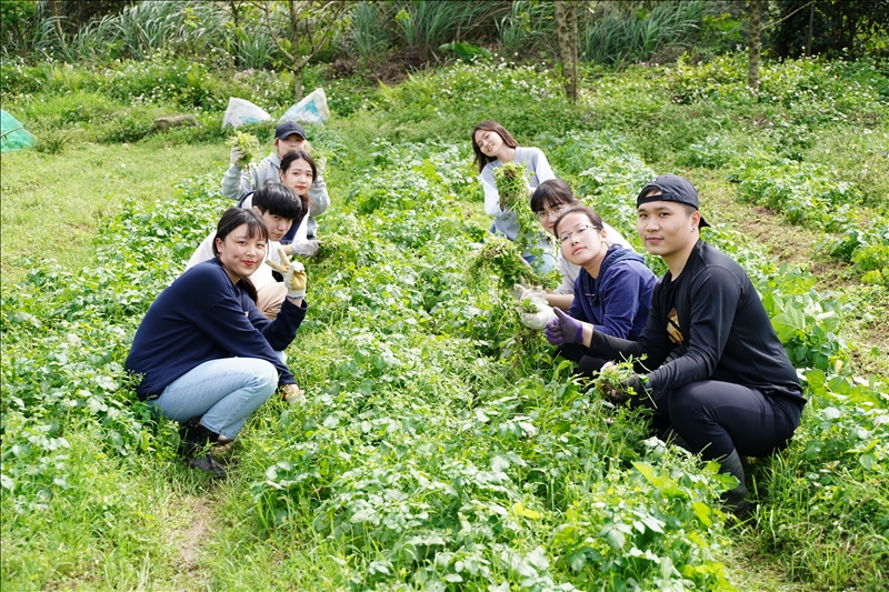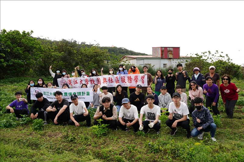 同學在農場主人梁素秋老師的帶領之下,從整土,除雜草,搭棚架到灌溉植物與協助收獲農作,進行了一天的農事活動。居住在淡水本地的學生說到,雖然自己從小就生長在淡水當地,可是求學過程中,都是向著都會區移動,透過這次服務學習農事體驗,讓自己對淡水在地的認同也產生了諸多不同的想法。