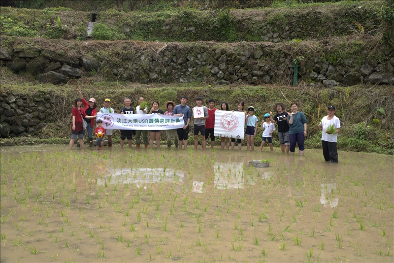到達百年歷史的梯田後,石門嵩山社區發展協會理事長王理事長帶領者學員們依同前往插秧的地方。在進行插秧體驗之前王理事長和我們介紹了嵩山社區百年梯田的形成、特殊性及農業概況,說道由於梯田的特殊性,所以插秧都必須要人工下去行動插秧的動作。